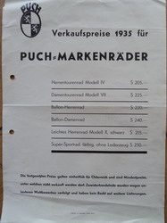 1933 In Wiener Neustadt wurde der Betrieb stillgelegt 1934 Oktober fusionierten die "Steyr Werke AG" in Steyr und Puch in die "Steyr-Daimler-Puch Aktiengesellschaft" Die Maschinen Wiener Neustadts wurden nach Steyr transferiert - Automobilpoduktion Die Fahrradproduktion wurde ausschliesslich von nun an in Graz etabliert. Die Motorradproduktion blieb in Graz |