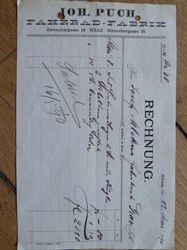 1889 Februar suchte er um eine Bewilligung als Betriebstätte ebendort an. März kam die Absage der Bewilligung und er fechtete diese juristisch an. Gleichzeitig mietete er einen Platz in der Schlosserei Heinrich Sax und meldete dort in der Arche Noe 12 das handwerkliche Schlossergewerbe an. April wurde diesem stattgegeben. Dort machte er Fahrradreperaturen. Ebenso gab derStadtrat auch seinem Einspruch in der Strauchergasse nach und ab November konnte er dort in vollem Umfang seine Tätigkeiten nachgehen. 1890 Februar - Ansuchen für das "freie Gewerbe der fabriksmäßigen Erzeugung von Fahrrädern in dieser Hauptstastadt mit Standort Strauchergasse 18a" Juni kam die Bewilligung. Beginn der Puchfahrräder, unter den Namen "Styria" - dort beschäftigte er durchschnittlich 20 Mitarbeiter - 1891 Mai, erweiterte er seine "Fabrik" um die Dependance in der Karlauerstrasse 26 und mietete dafür dort einen Teil in der Fabrik von Herrn V. Gerth 1. Juli änderte er den Betriebsnamen in eine Offene Handelsgesellschaft um 17. Juli wurde die Firma als "Johann Puch & Comp., fabriksmäßige Erzeugung von Fahrrädern" ins Grazer Handelsregister eingetragen |